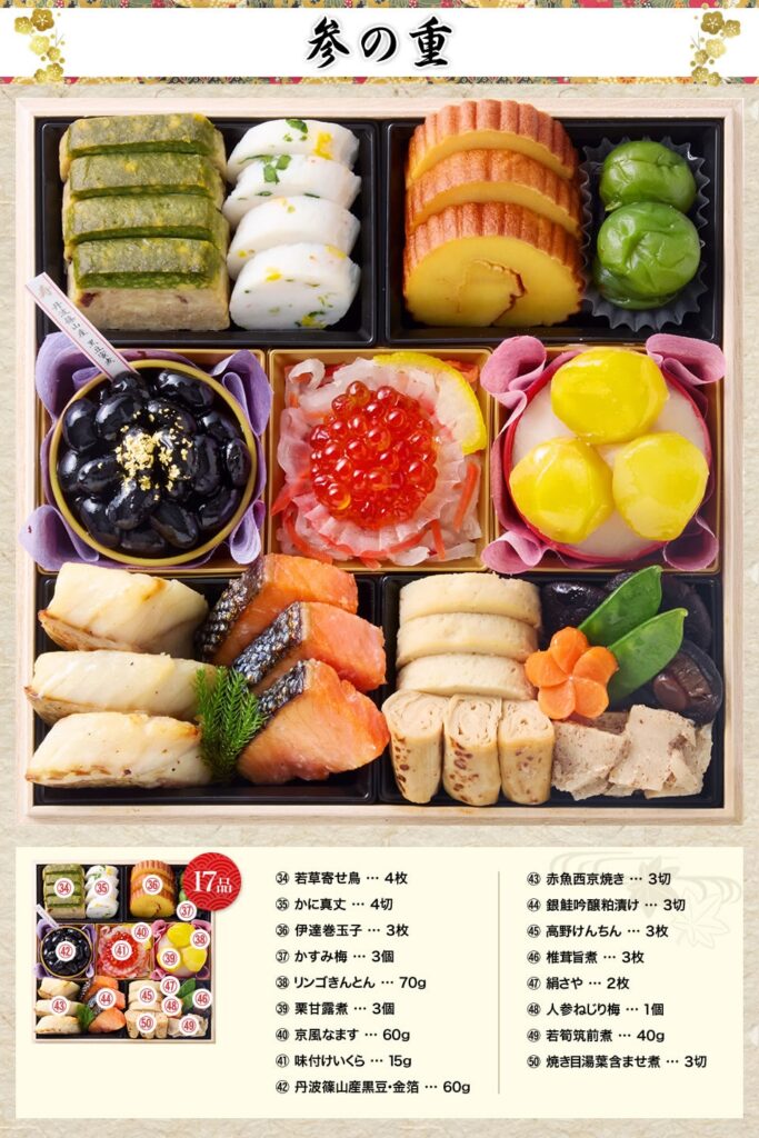 お重の内容 | 和風・三段重・50品目(約4~5人前) |