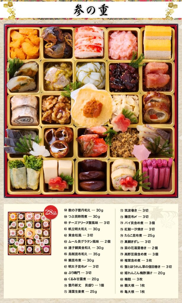 早割期間の30,000円(通常38,000円)も魅力。味・見た目・手間の三拍子が揃った大人数向けの決定版として、今年の“主役のおせち”に自信をもっておすすめします。