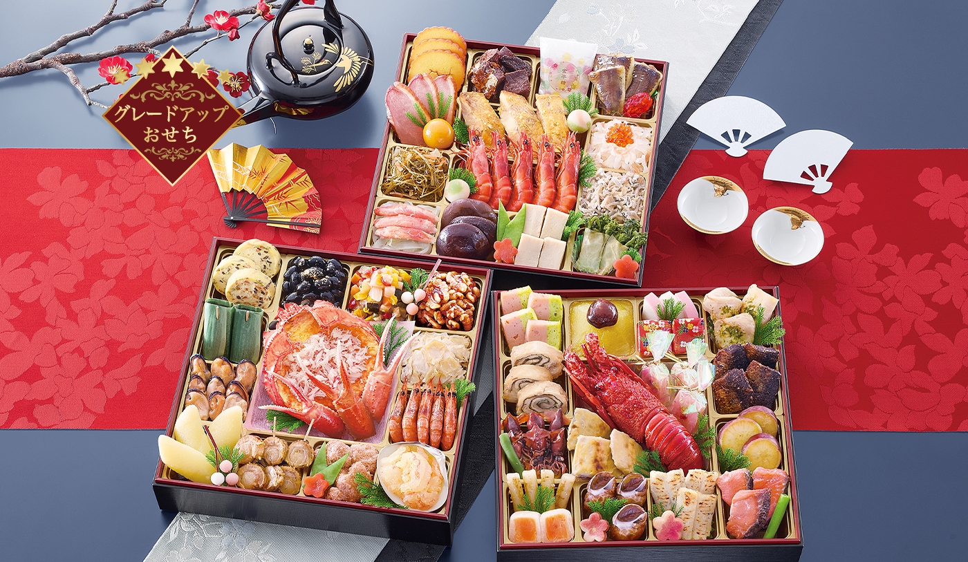 京都祇園の料亭「華舞」監修おせちの華やかな特大三段「夢の舞」には、世代を問わず楽しめる57品がぎっしり盛り込まれています。