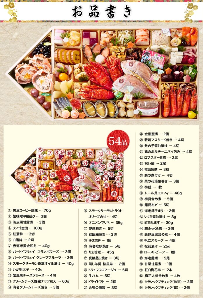 おせち「舟盛大漁船」一段重の献立内容とクチコミ