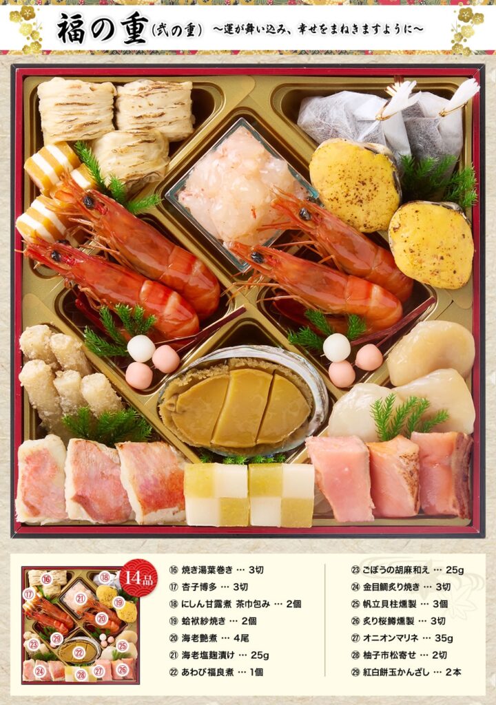 • 去年初めてお願いしたところ、質量ともに満足のいくおせちであった為、リピしました。