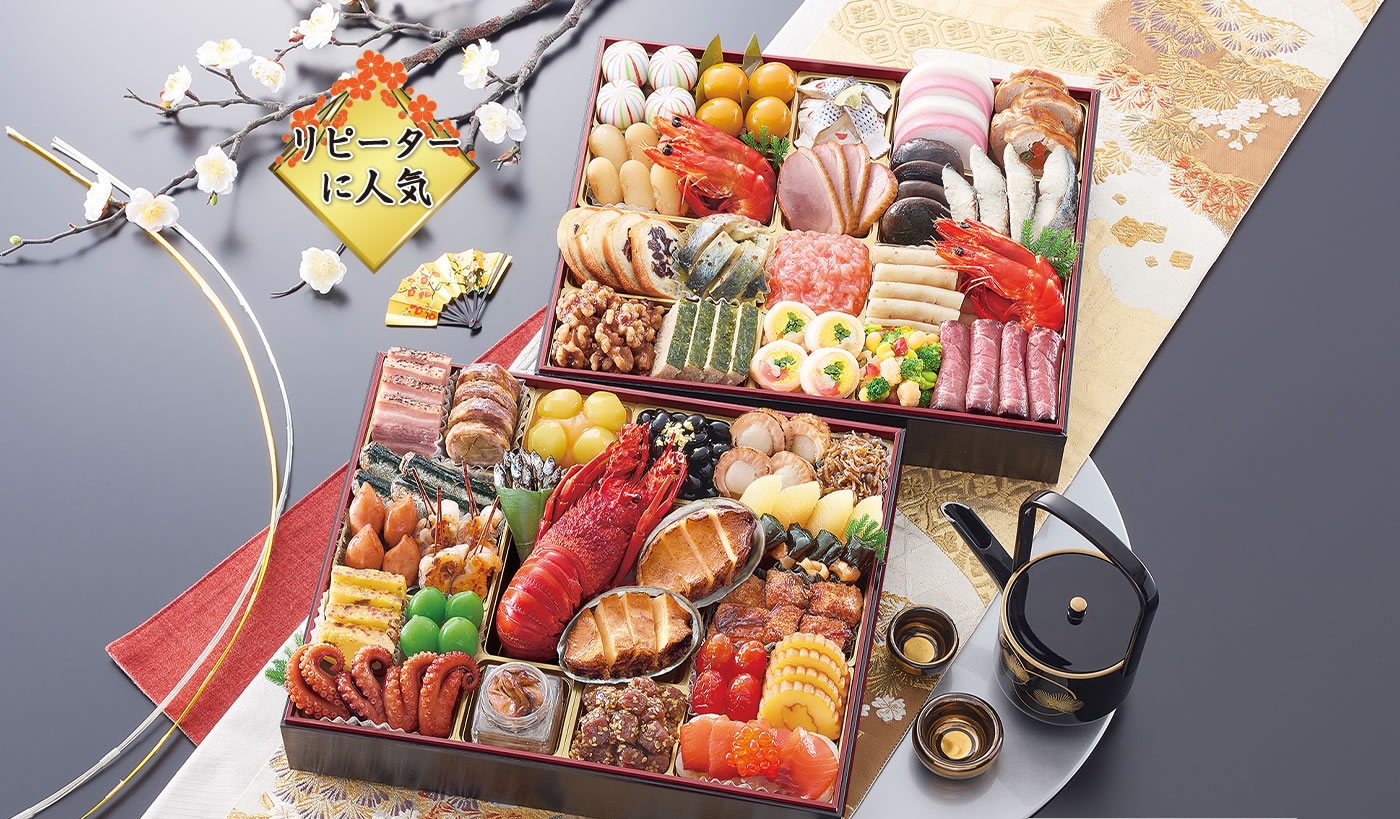 瀬戸内の持ち味を前面に出した「輝希」二段重は、華やぎと食べやすさの両立が魅力のおせちです。